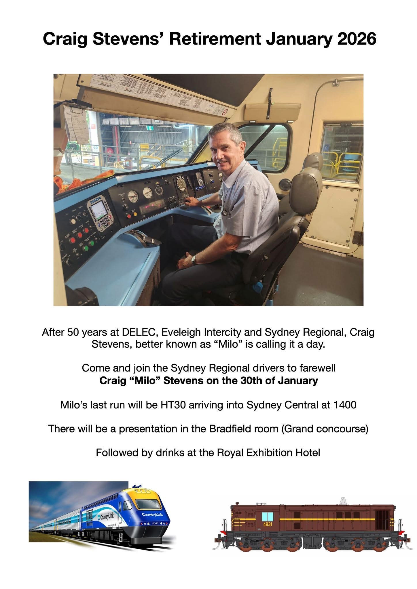 After 50 years at DELEC, Eveleigh Intercity and Sydney Regional, Craig Stevens, better known as “Milo” is calling it a day.